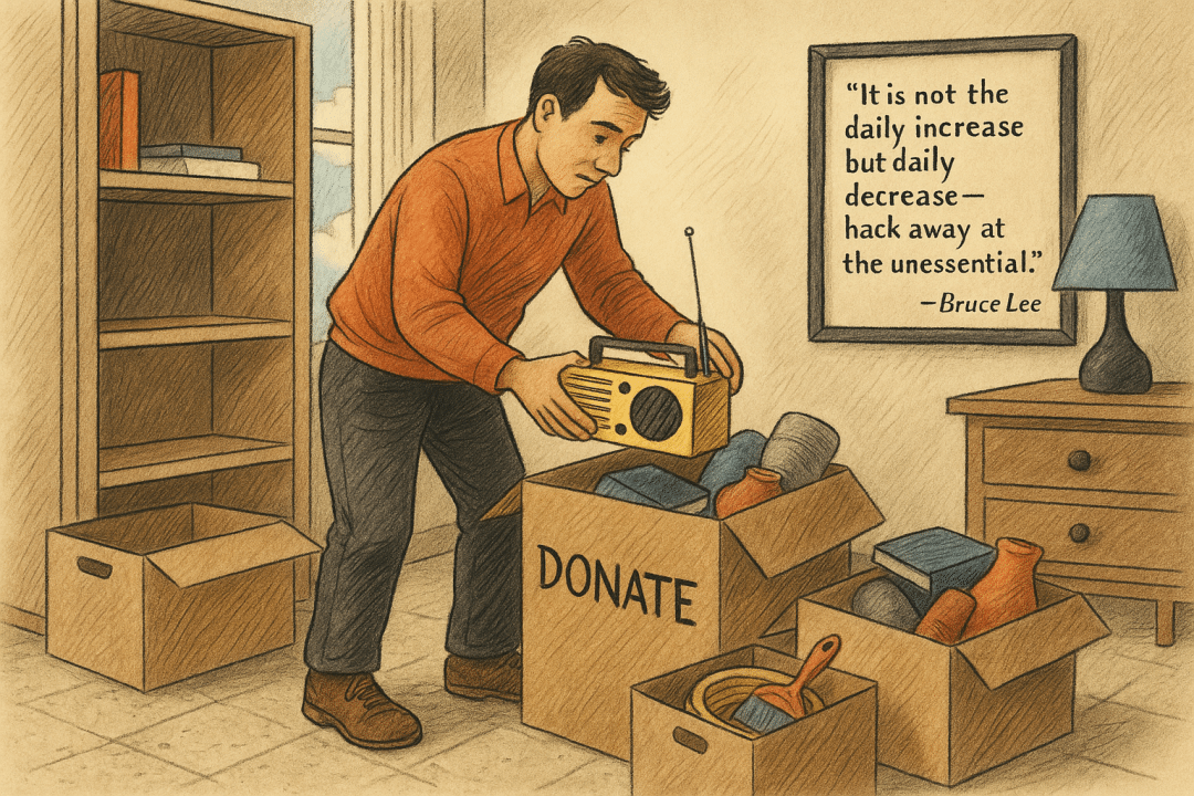 Bruce Lee captured the ethos: โIt is not the daily increase but daily decreaseโhack away at the unessential.โ Take one more pass todayโempty a box, set a departure date, gift a dormant toolโand feel the lift that subtraction delivers. Keep hacking away, and soon the only things remaining will be the ones that pull you forward rather than hold you down.